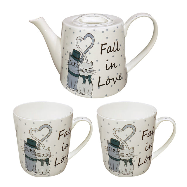 Teekannenset Modern mit 2 Tassen »Fall in Love«